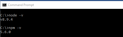 - Once the downloaded file successfully installed you can verify the version of Node & NPM using command prompt as shown below.